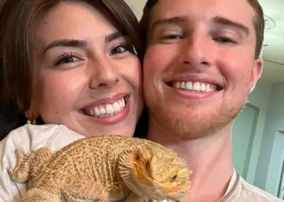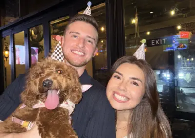 When I am not working, I enjoy spending time with my fiancé, trying new food, taking care of my bearded dragon and mini golden doodle, and playing basketball.